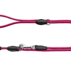 Verstelbare Hondenriem Freestyle Raspberry Dit is een mooie raspberry hondenriem die is gemaakt van duurzaam polyamide touw. Het materiaal is waterafstotend en weerbestendig. De riem heeft dan ook weinig onderhoud nodig, het vuil kunt u er met een vochtig doekje vanaf halen. Deze hondenriem kan drievoudig worden versteld. De riem heeft twee karabijnhaken. Kleur: framboos rood. Leverbaar in de volgende maten: Maat Diameter Lengte 8/200 8 mm 200 cm 10/200 10 mm 200 mm