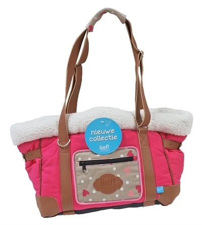 Lief! Vervoerstas Open Girls Onderweg met de hond? Dan neem je haar mee in deze geweldige tas van Lief! Met de Lief! Vervoerstas Open Girls neem jij je hond mee in stijl. De zachte voering aan de binnenkant van de tas zorgt ervoor dat je hond lekker zacht en warm ligt. De lederlook banden en accenten aan de hoekjes zorgen voor stevigheid en een langere levensduur van de tas. De hoekjes zijn namelijk extra beschermd en kun je gemakkelijk afnemen als ze vies zijn. Aan de voorkant zit een handig zakje voor bijvoorbeeld wat poepzakjes of hondensnoepjes. Kortom: de perfecte tas om je hond in mee te nemen! Binnenmaat: 38x28cm