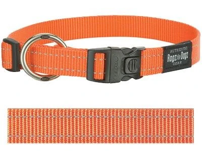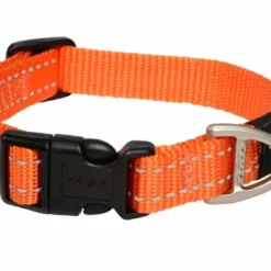 Hondenhalsband Utility Oranje Deze effen oranje hondenhalsband van Rogz komt uit de serie “utility”. Deze serie biedt u goede nylon hondemhalsbanden, hondenriemen en hondentuigen van uitstekende kwaliteit, met reflecterende stiksels. De halsband is uitgevoerd in stevig nylon en versterkt met ronde plastic componenten. Hierdoor biedt de hondenhalsband voor iedere hond een perfecte pasvorm. De sterke ring is door Rogz zelf ontworpen, heeft geen lasnaden en is gemaakt van gegalvaniseerd chroom, dat ongevoelig is voor aanslag. De RogLoc ™ sluiting is gepatenteerd en biedt u een supersterke kliksluiting. De reflecterende stiksels zorgen ervoor dat de hond beter zichtbaar is. Kleur: oranje. Leverbaar in de volgende maten: Bepaal de juiste maat voor uw hond: